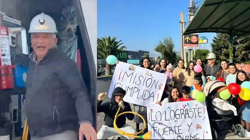 En el registro se aprecia cómo el adulto mayor se prepara para su último turno en una minera y a su regreso al hogar es recibido por su familia con globos y carteles que dicen “¡Misión cumplida!” y “¡Lo lograste!”.