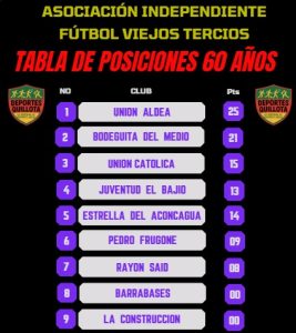La Asociación Independiente de Fútbol Viejos Tercios de Quillota disputó el pasado fin de semana una nueva jornada por el Campeonato Oficial de Apertura 2026, y tras los resultados que se produjeron, la tabla de posiciones en cada una de las categorías quedaron de la siguiente manera.